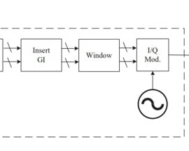 In the Li-Fi transmitter, digital data is encoded and mapped to optical modulation symbols and converted into a time-domain waveform using multicarrier processing. Guard intervals and windowing are applied to improve robustness against optical channel effects. The signal is then I/Q modulated, DC-biased for intensity modulation, and fed to the optical front end, where information is transmitted using controlled light intensity.